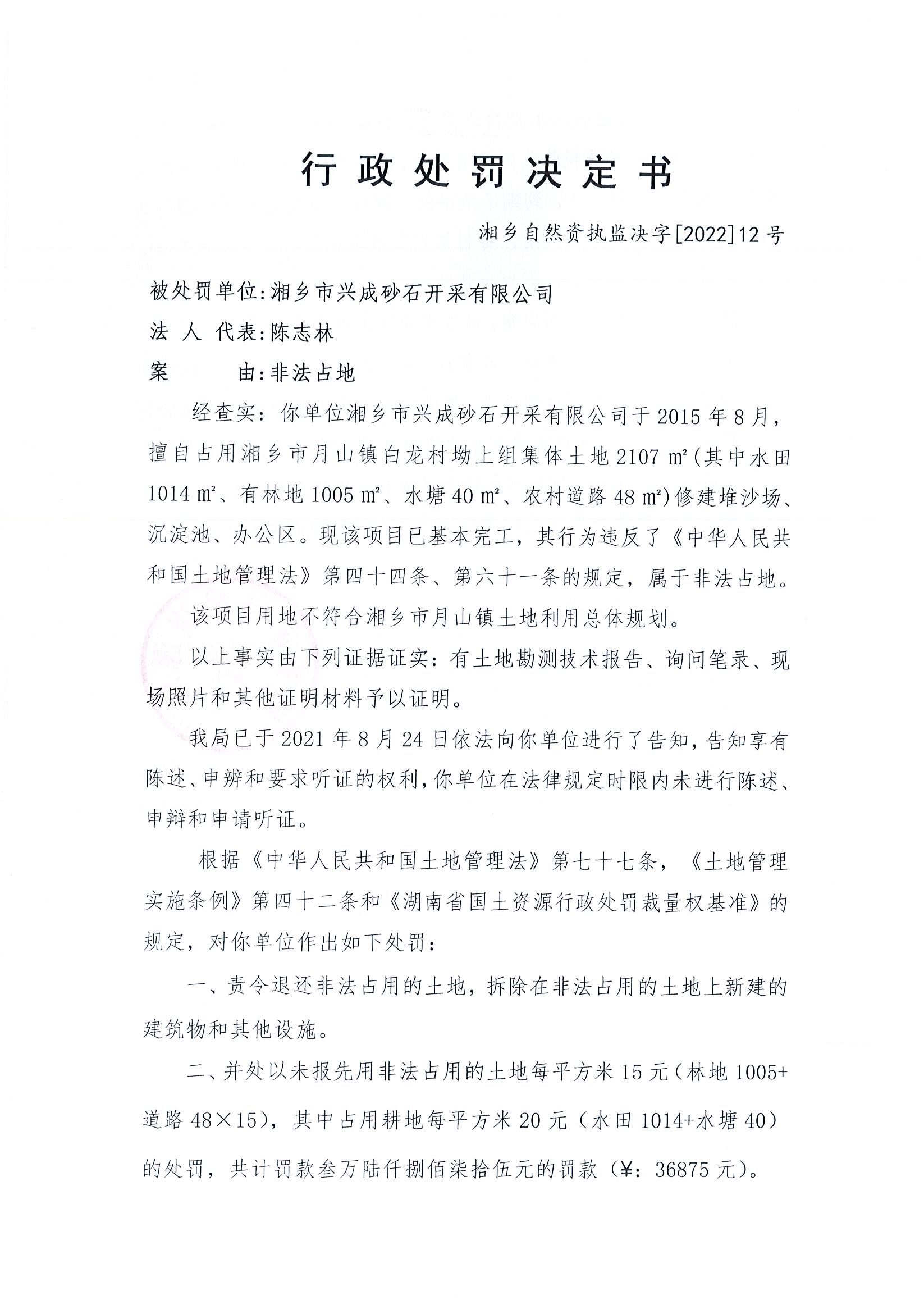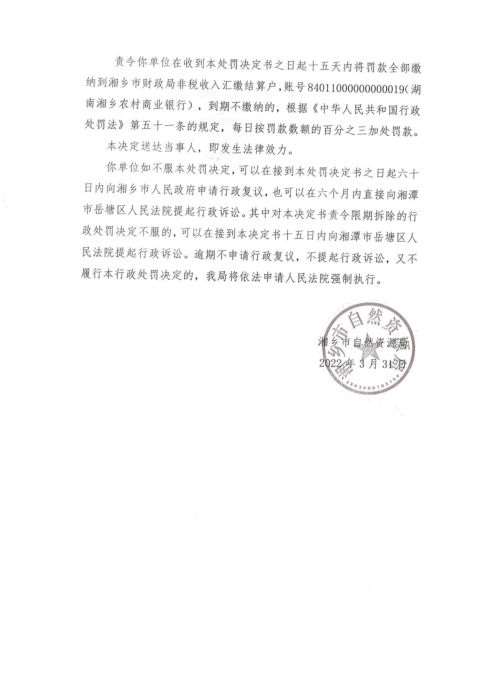 湘鄉(xiāng)市自然資源行政處罰決定書【2022】12號