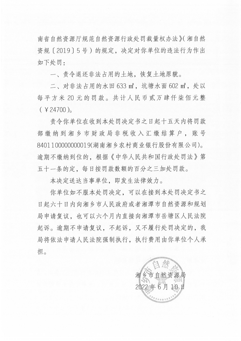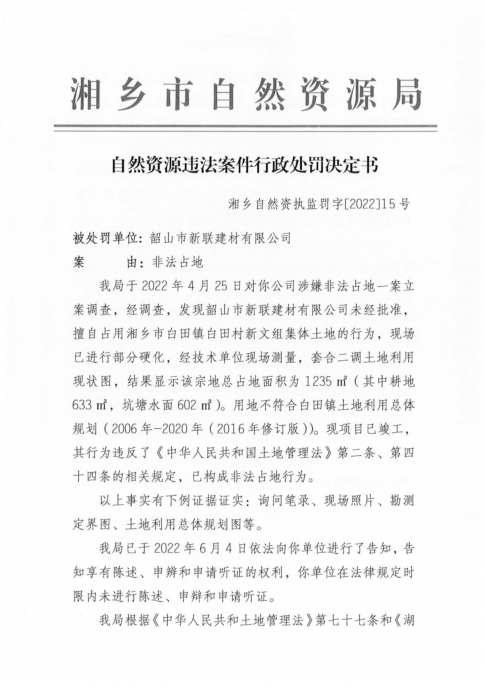湘鄉(xiāng)市自然資源行政處罰決定書【2022】15號