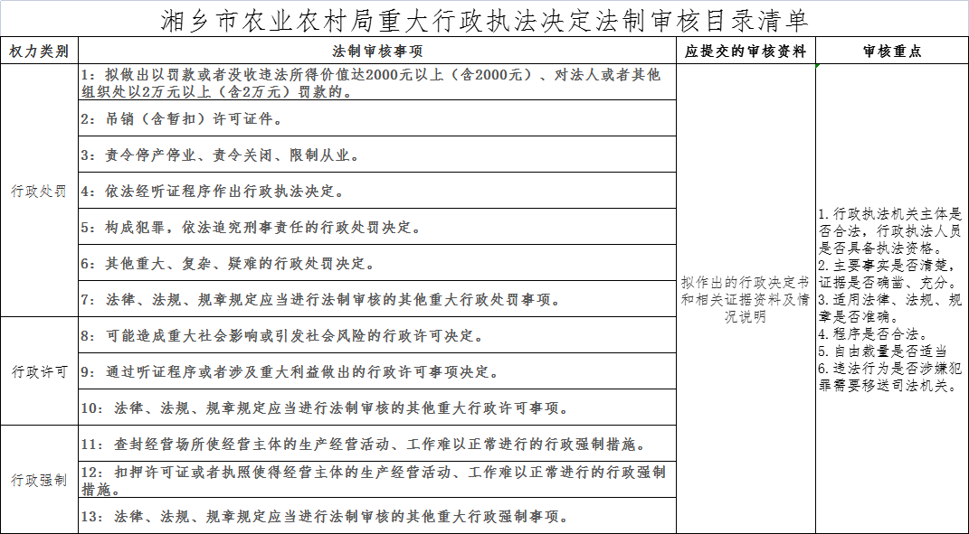 農(nóng)業(yè)農(nóng)村局重大行政執(zhí)法決定法制審核目錄清單