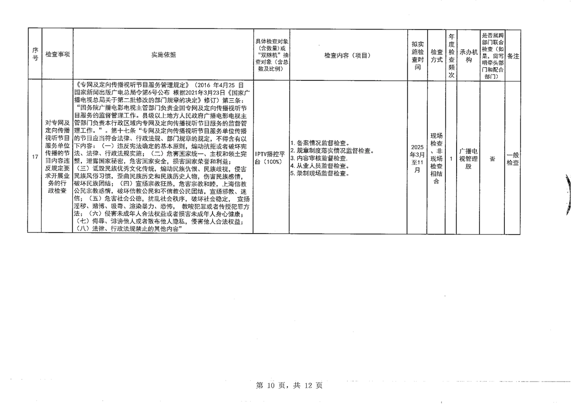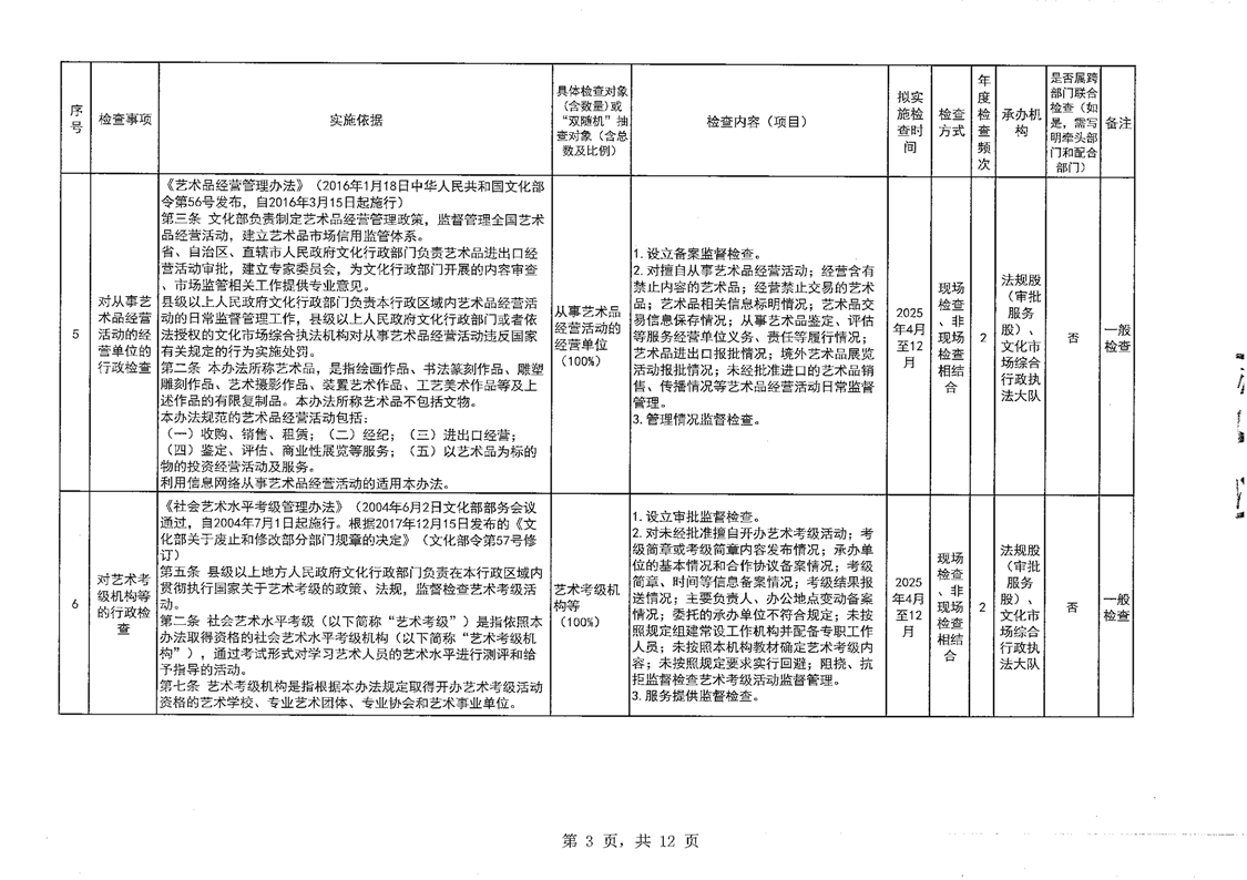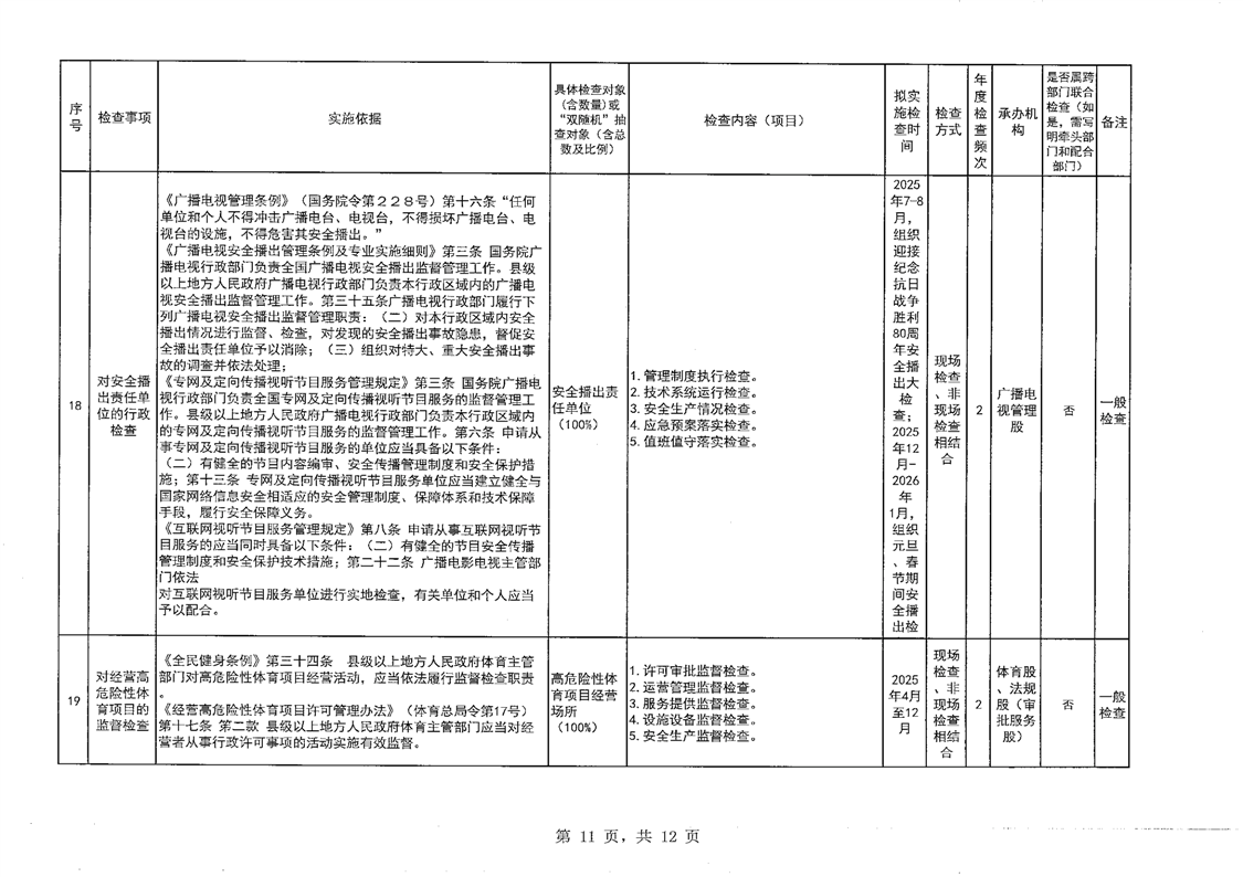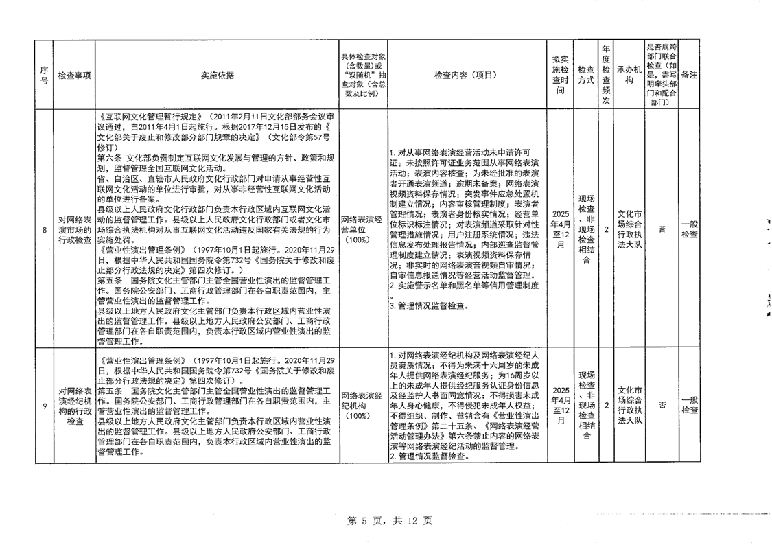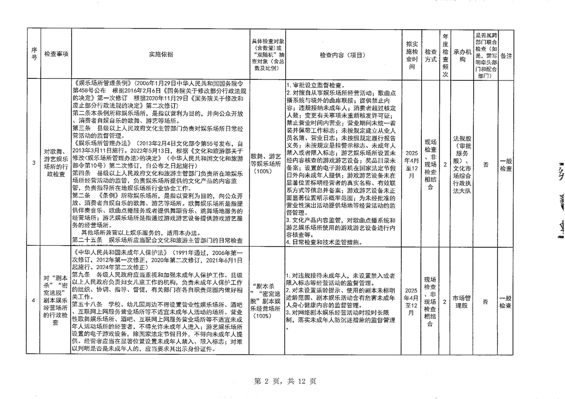 湘鄉市文化旅游廣電體育局2025年度涉企行政檢查計劃