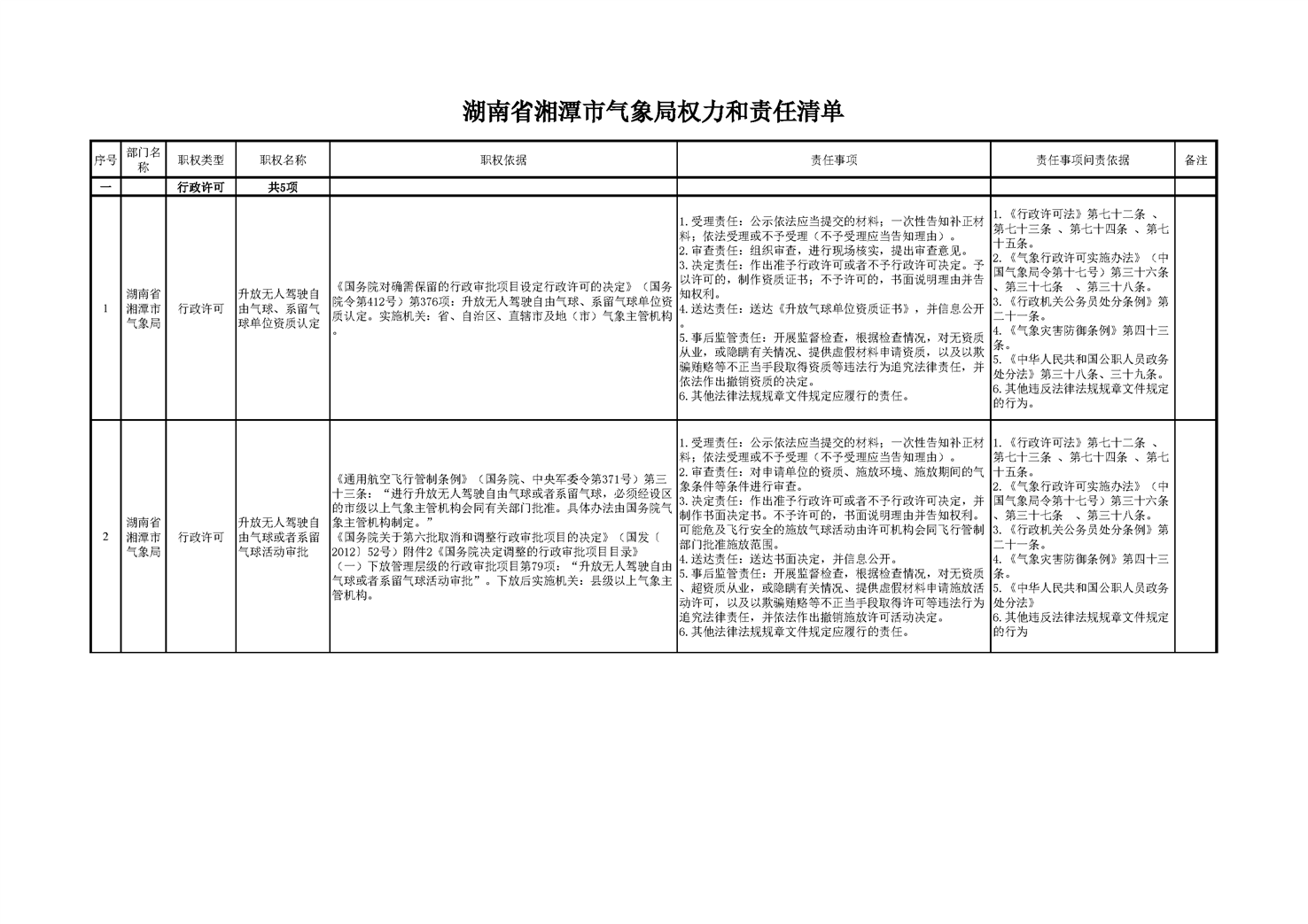 湖南省湘潭市氣象局權(quán)力和責(zé)任清單