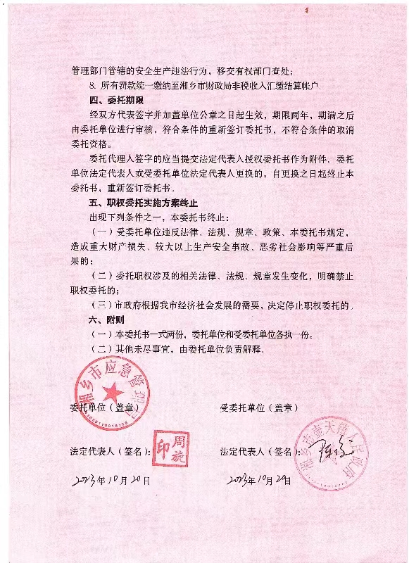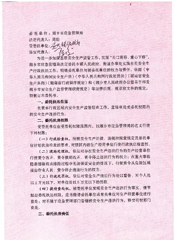 湘鄉(xiāng)市壺天鎮(zhèn)安全生產(chǎn)行政執(zhí)法委托書