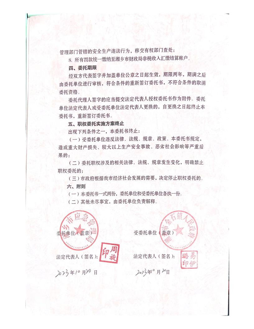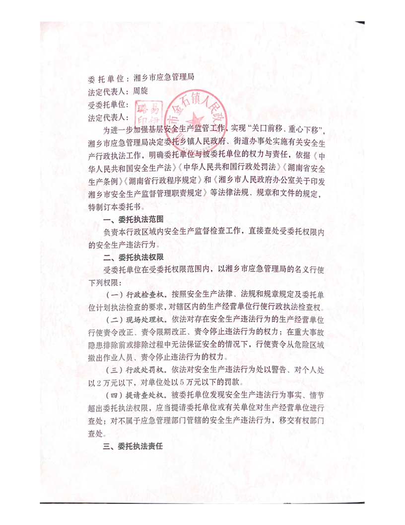 湘鄉市安全生產行政執法委托書