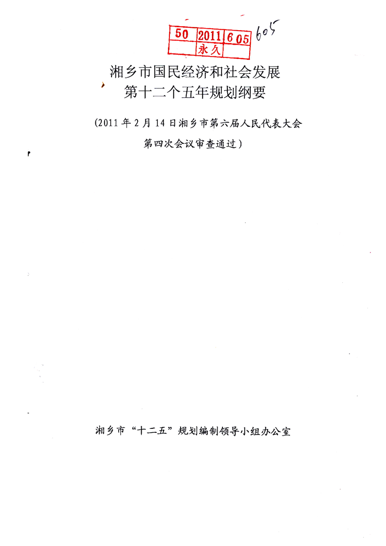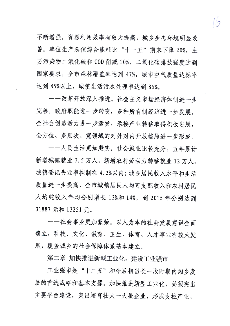 湘鄉市國民經濟和社會發展第十二個五年規劃綱要