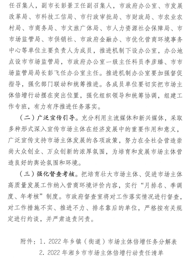 湘鄉市市場主體倍增行動實施方案(2022-2025)