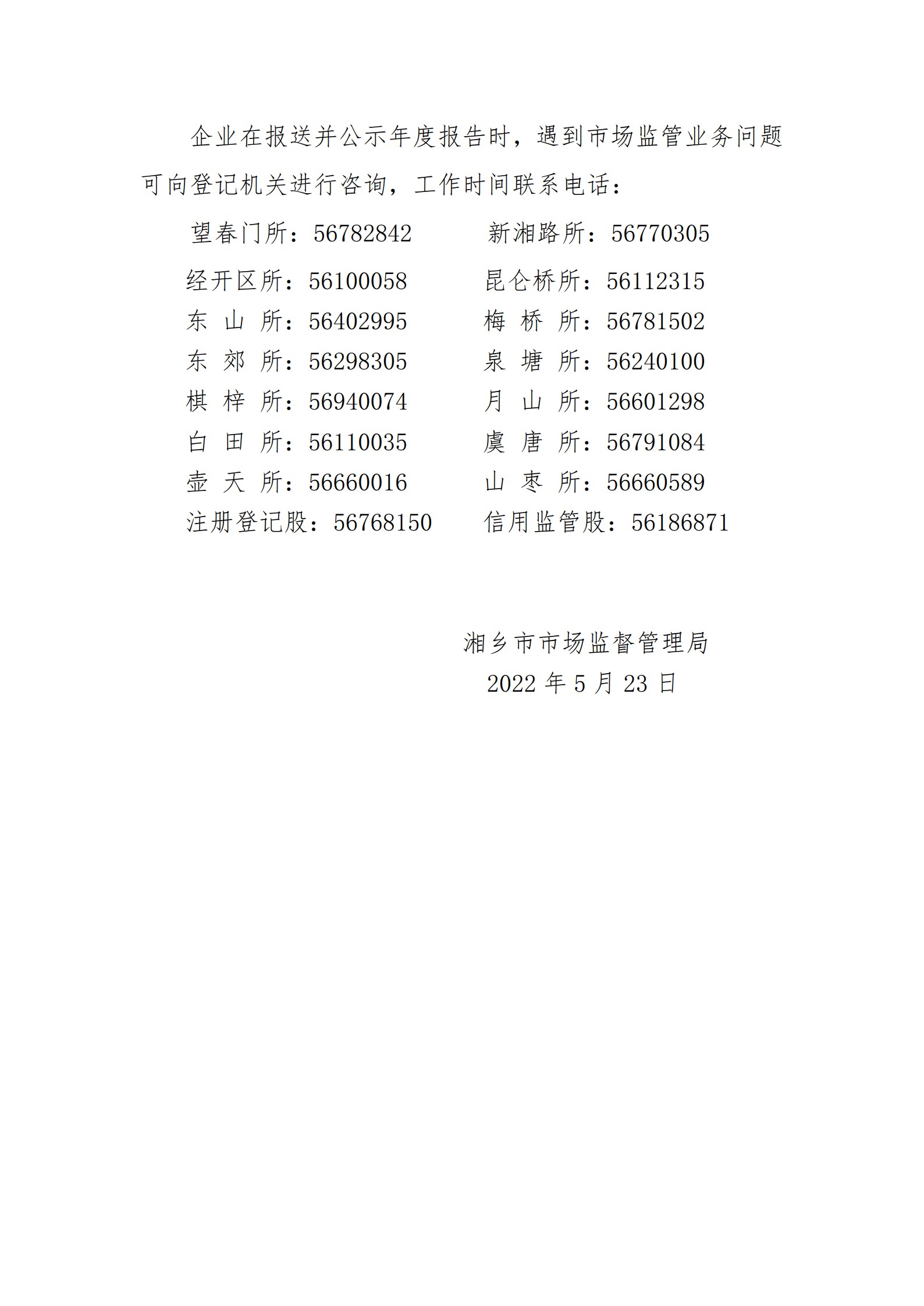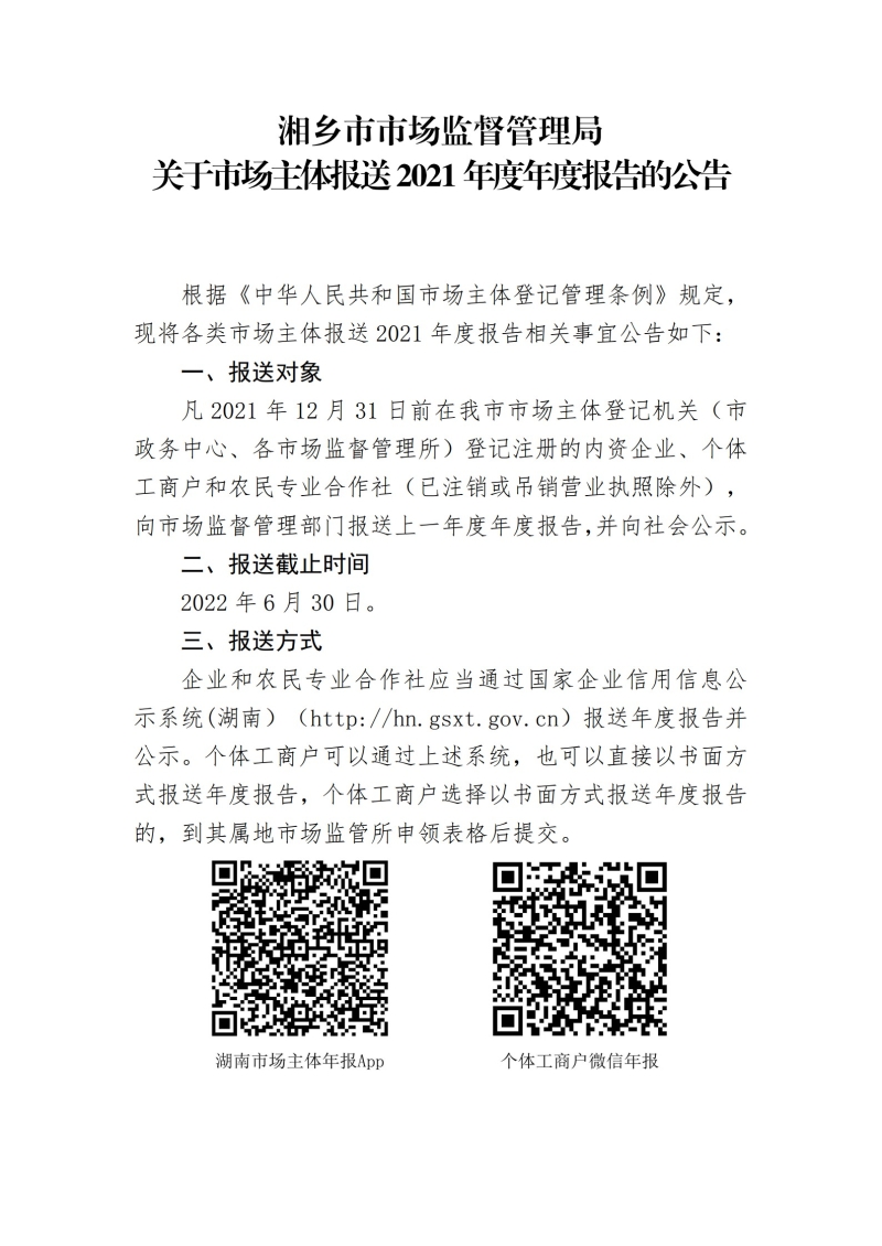 湘鄉(xiāng)市市場(chǎng)監(jiān)督管理局關(guān)于市場(chǎng)主體報(bào)送2021年度年度報(bào)告的公告