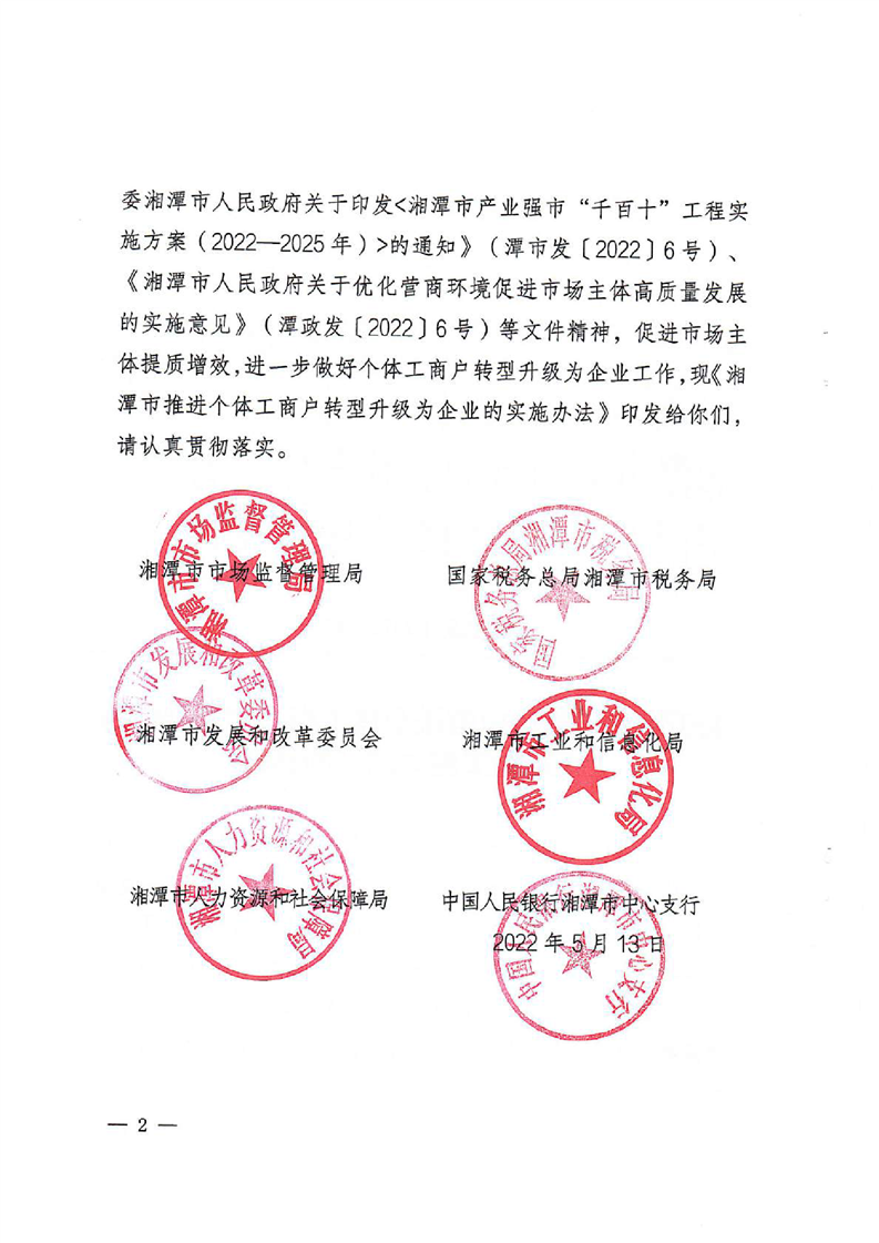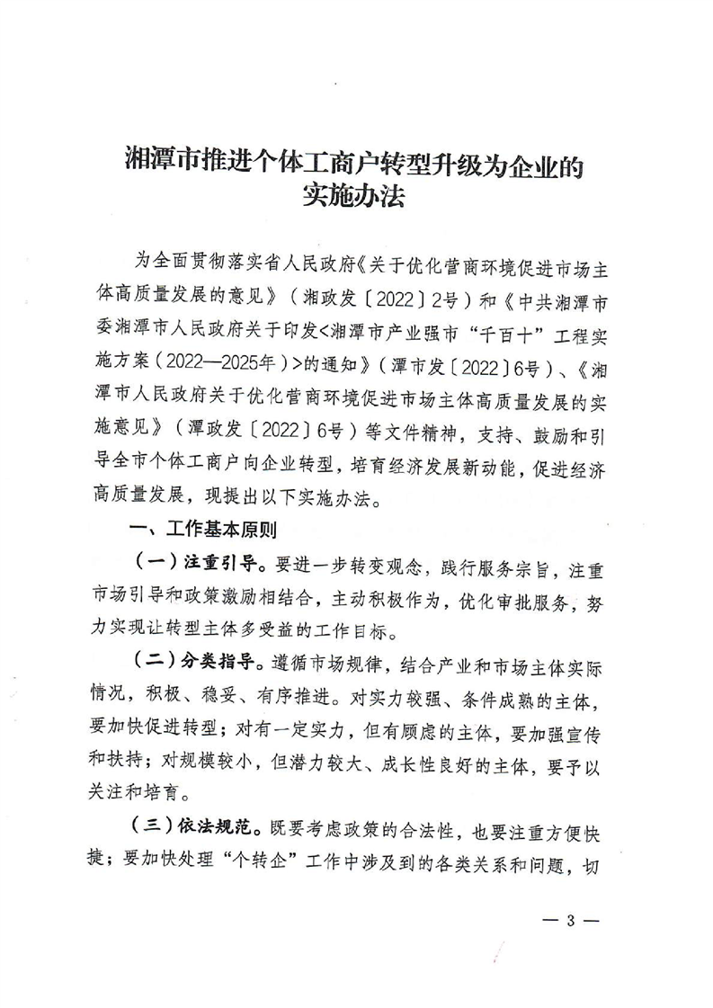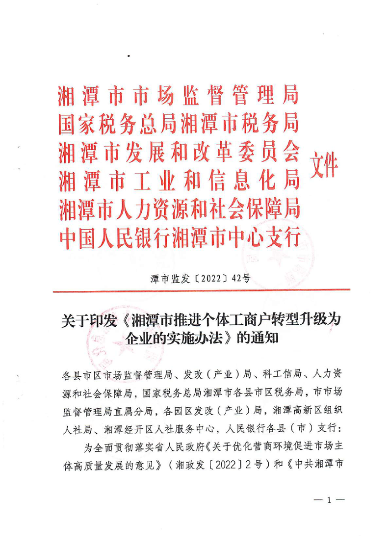 關于印發《湘潭市推進個體工商戶轉型升級為企業的實施辦法》的通知