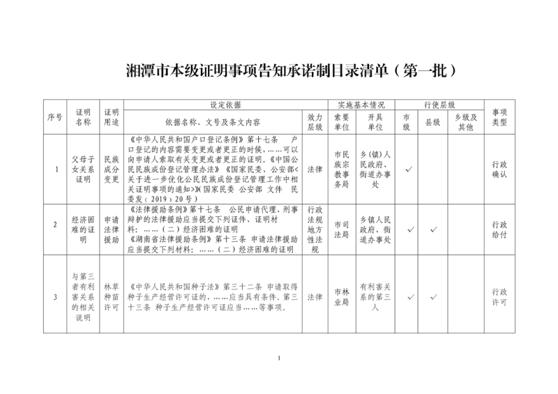 湘潭市本級證明事項告知承諾制目錄清單(第一批)