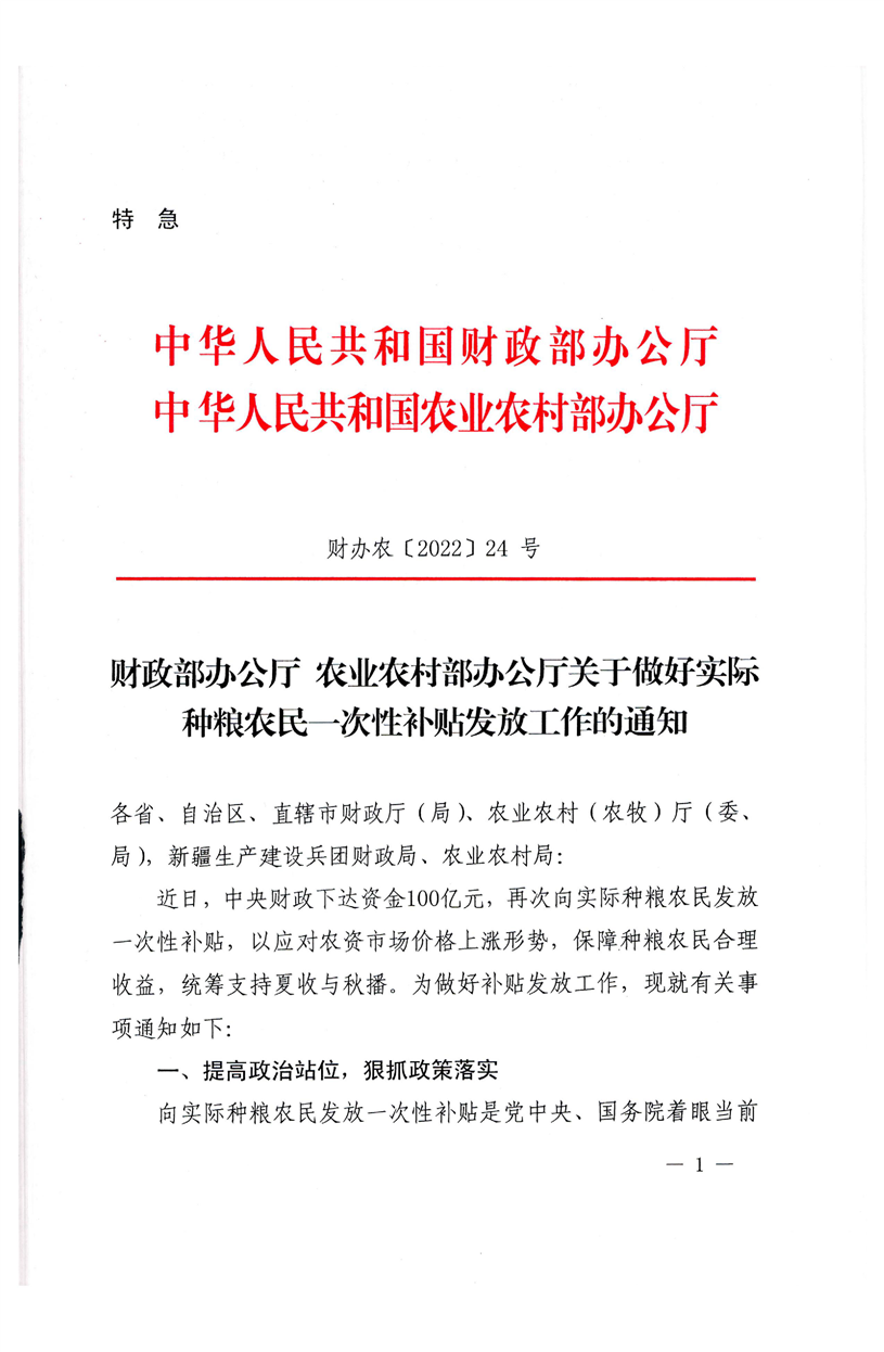 關于做好實際種糧農民一次性補貼發放工作的通知