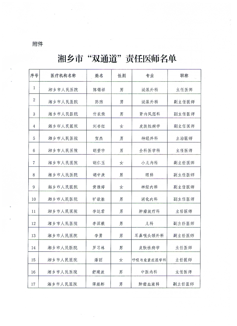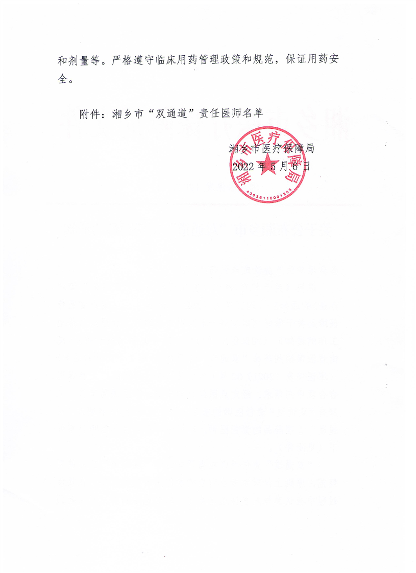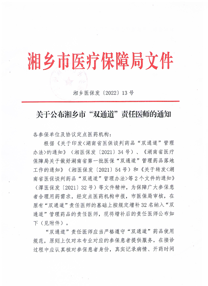 湘鄉市醫療保障局 關于公布湘鄉市“雙通道”責任醫師的通知(湘鄉醫保發【2022】13號)