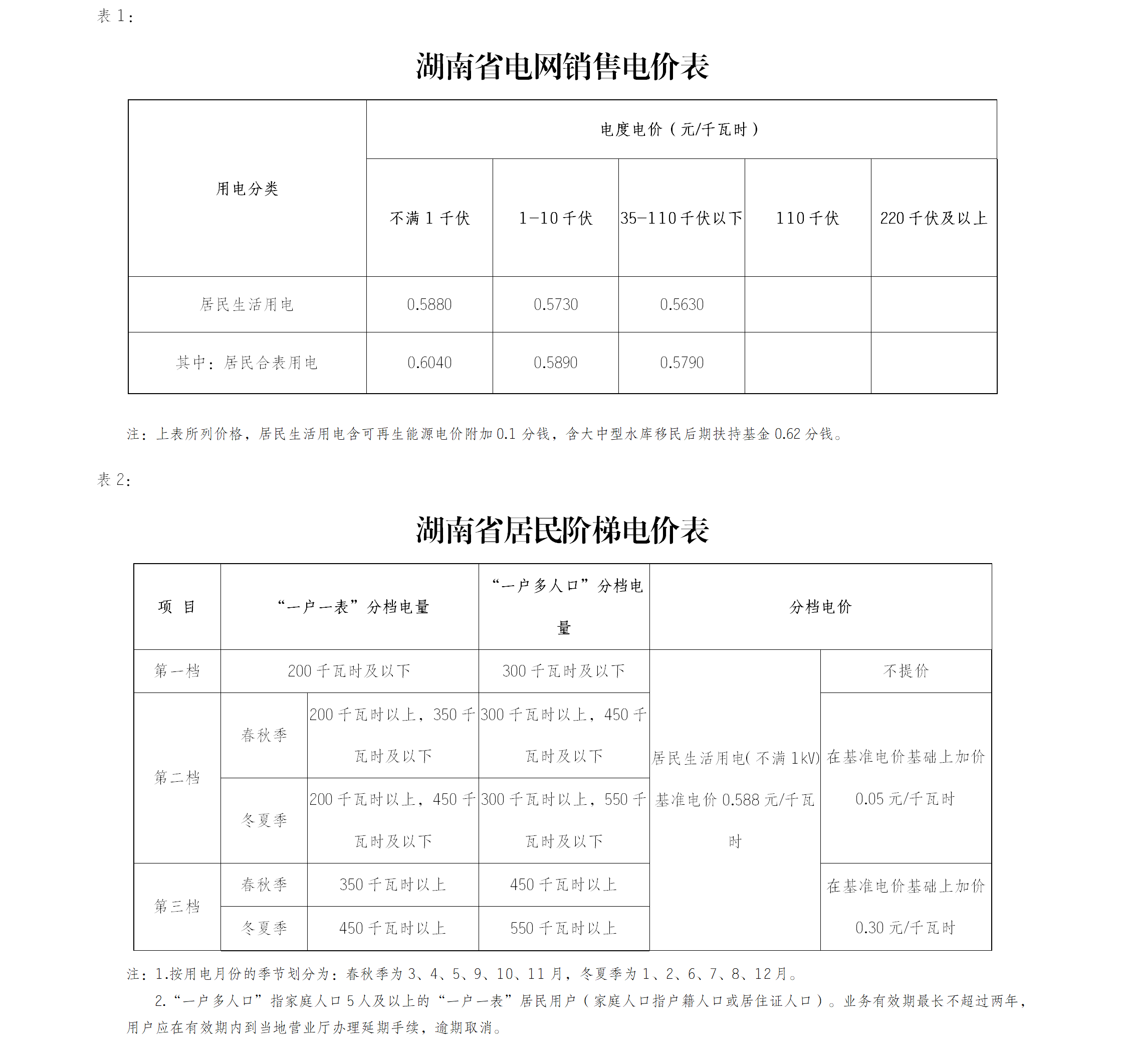 湖南省電網(wǎng)銷售電價(jià)表和居民階梯電價(jià)表