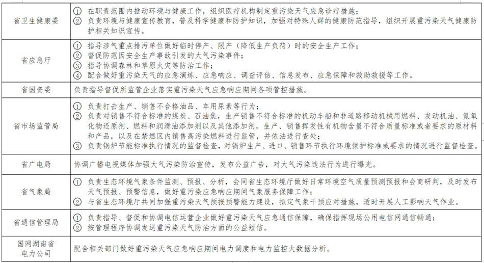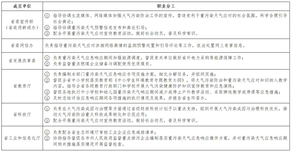 10.3湖南省重污染天氣應急臨時指揮部各成員單位重污染天氣應對工作職責分工表