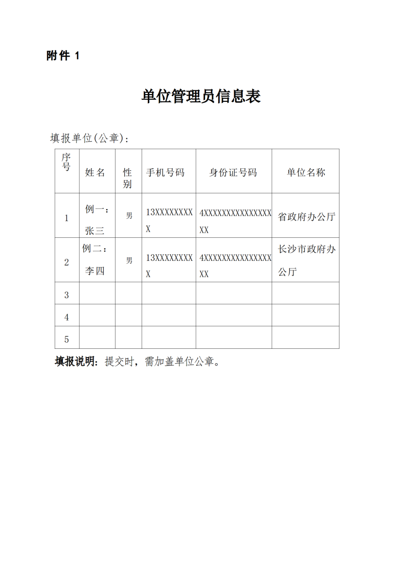 附件: 1.單位管理員信息表