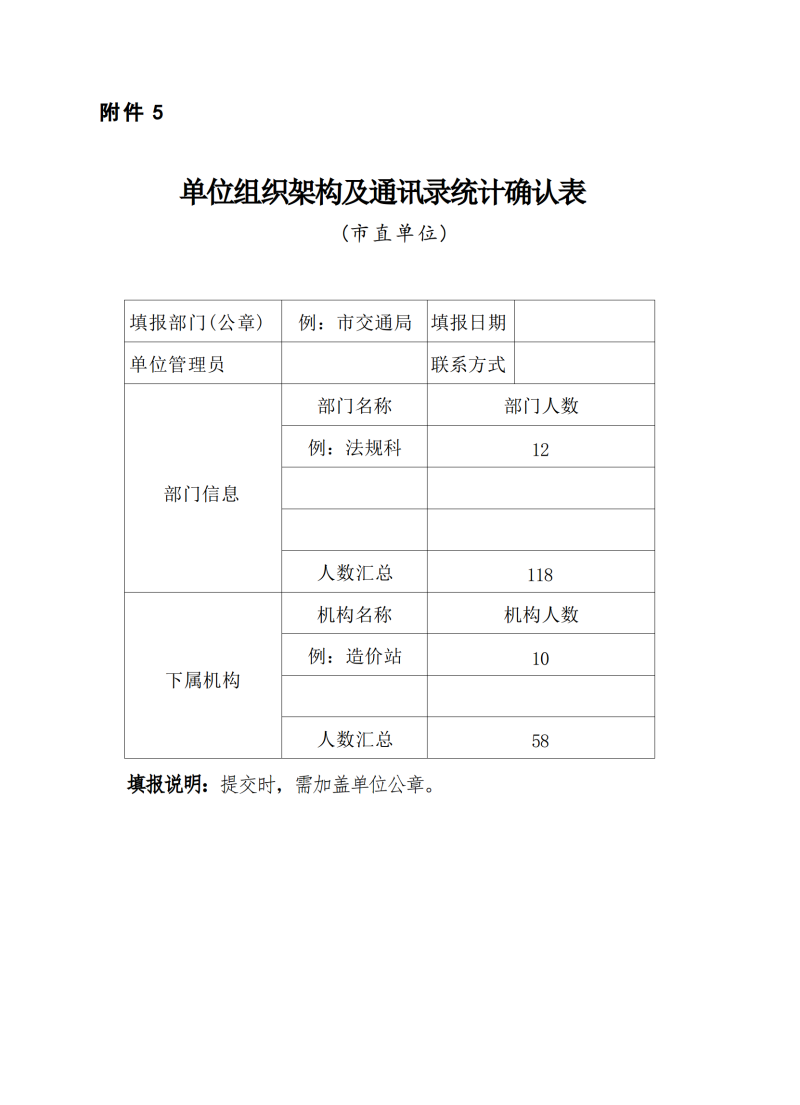 5.單位組織架構及通訊錄統計確認表(市直單位)