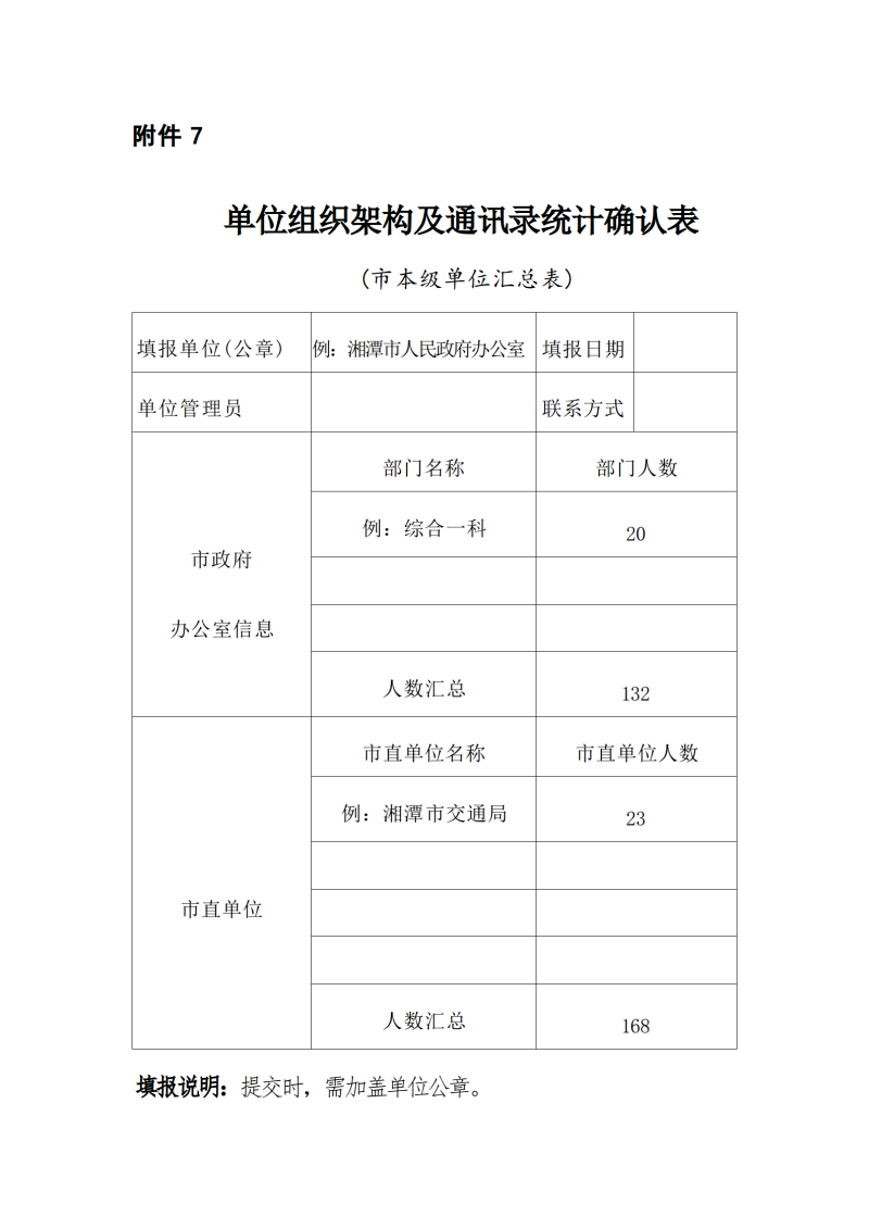 7.單位組織架構及通訊錄統計確認表(市本級單位匯總表)